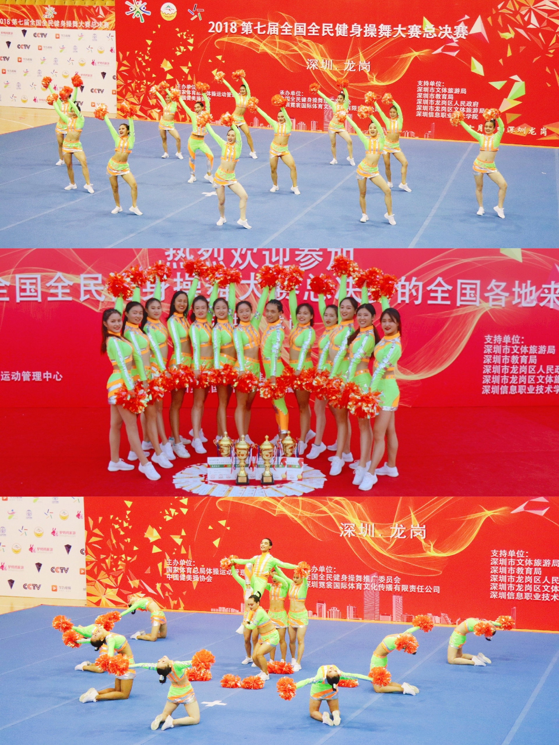 2018年10月22日-26日,第七届全国全民健身操舞大赛总决赛在深圳市龙岗区举行,此次赛事由国家体育总局体操运动管理中心、中国健美操协会主办。我校健美操代表队经过四天的激烈角逐,队员们齐心协力,拼搏进取,最终从全国近400支参赛队伍6200多名参赛选手的激烈竞争中脱颖而出,斩获了“四连冠”的优异成绩。