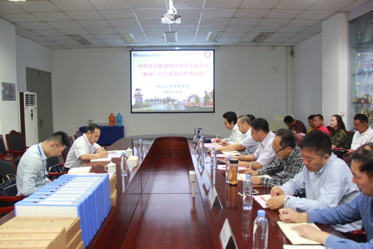 2018年9月18日,为全面了解我校的本科教育教学情况,教育部评估专家、博士生导师、中国人民大学教务处处长龙永红教授一行莅临我院,进行本科教学的检查与指导工作。体育学院党总支书记夏泽友同志、学院院长向勇教授、专职组织员荣文学教授、副院长韩海军教授、工会主席袁志华同志及学院老师代表等十八人参加了评估座谈会。会议由夏泽友同志主持。
