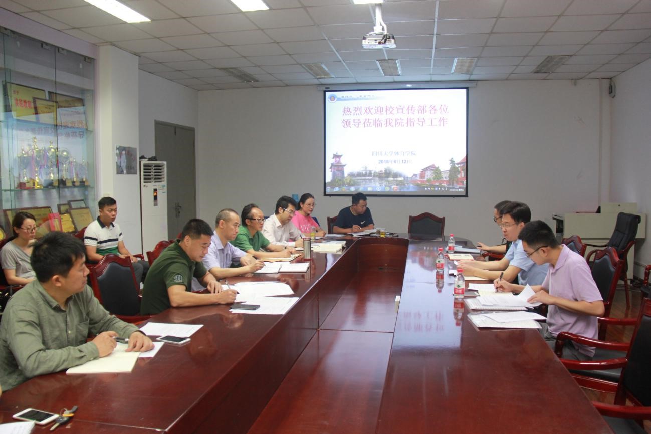 夏泽友书记围绕学院意识形态工作制度机制、阵地管理、落实学校意识形态工作责任制情况、特色经验及亮点工作等内容进行了专题汇报。期间,宣传部工作人员查阅了学院党委提供的《体育学院党总支意识形态工作自查报告》《体育学院落实意识形态工作方案》、学院党总支中心组学习记录、教职工政治学习记录、院领导听课记录以及学院意识形态工作的相关制度等纸质材料。