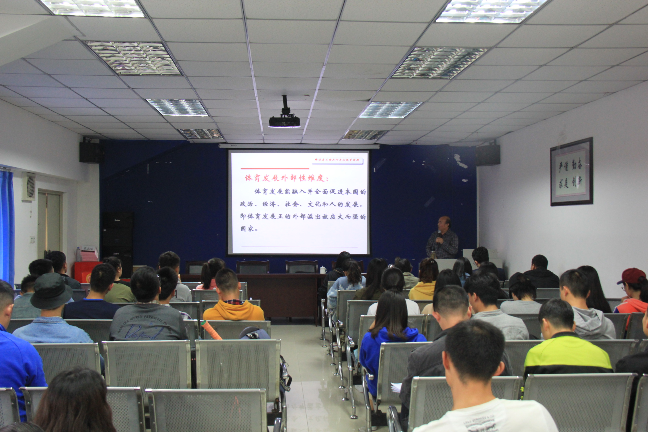 通过讲座,同学们纷纷表示对举国体制发展体育问题有了进一步认识,作为一名体育人,应积极肯定举国体制,为我国体育建设贡献一份力量。