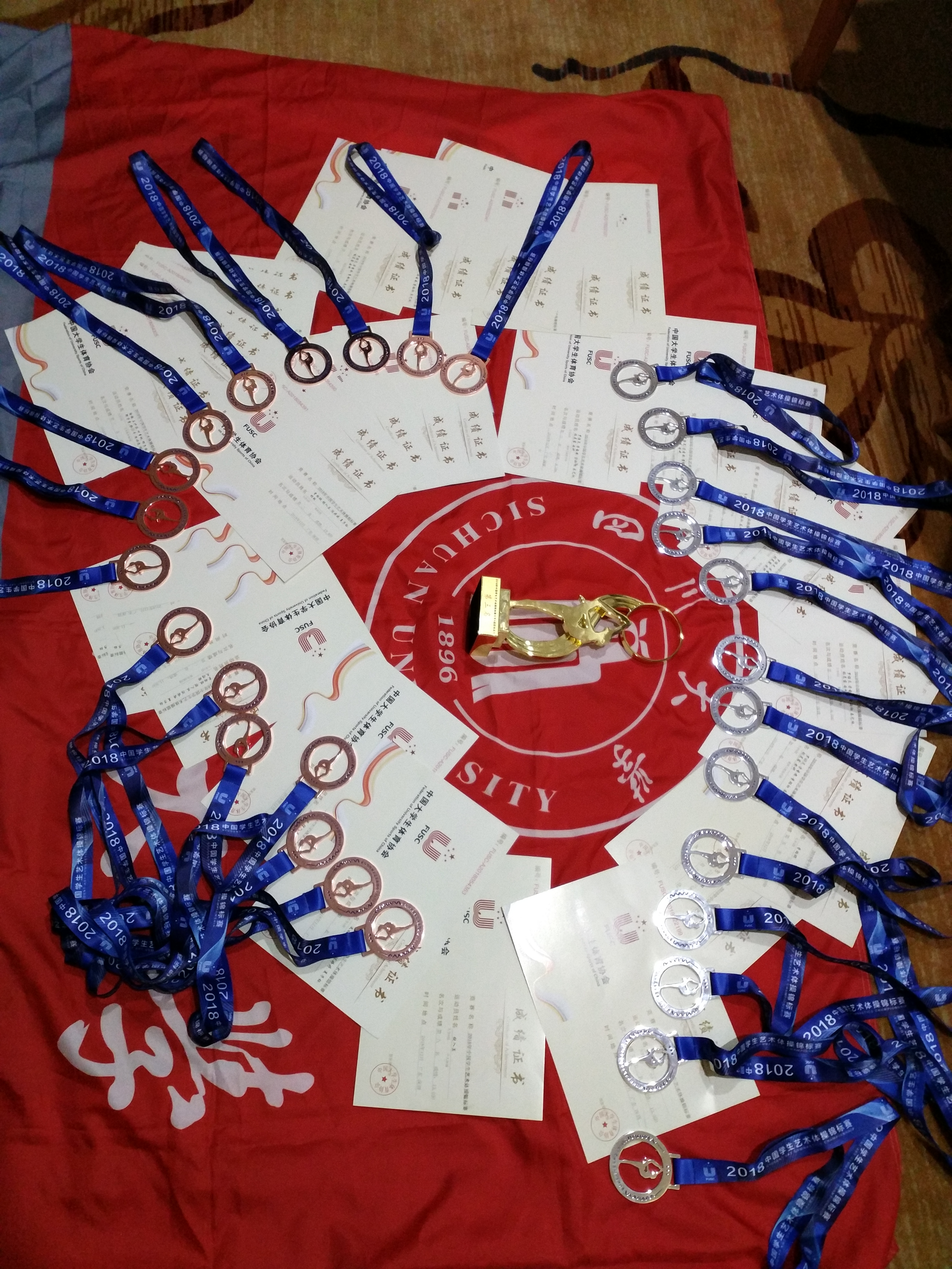 中国学生艺术体操锦标赛于2018年12月23-27日在深圳市龙岗区体育中心体育馆盛大开幕。本次大赛由中国大学生体育协会主办,中国大学生体育协会健美操艺术体操分会执行。本次比赛共吸引来自全国各省和直辖市89支不同年龄段代表队的900名运动员和教练员参加,是一年一度规模最大、水平最高的全国学生艺术体操锦标赛。今年,永利集团3044am代表队是一个新老队员交替的一年,但是参赛的所有队员发扬了拼搏和初生牛犊不怕虎的精神,克服水土不服,吃的差的条件,经过几天的比赛,最终获得艺术集体操B套 第二名,3球2绳第二名,集体五人带第三名,集体五级徒手第三名,集体五级棒第三名; 曾璐璇 获得个人全能第四名,个人带 第五名,个人圈 第六名,个人球 第七名,饶入菡 个人球 第八名,团体总分 第三名。虽然这次比赛诸多遗憾,队员赛场的经验不足,但是队员们通过这次比赛获的了宝贵的人生经历,加强了学习和交流,锻炼了自己的赛场应变能力,都一致定下目标和决心,刻苦训练,争取明年取得优异成绩,为学校争光!