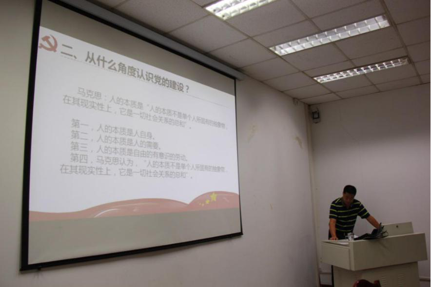 夏泽友书记以“如何理解党的政治建设工作”为主题,从什么是党的建设,应该从什么角度认识党的建设,政治建设的具体内容,怎样加强政治建设四个方面为大家进行讲解。在讲解过程中运用了很多实例帮助学生理解,结合身边实例,从新儒学到人的本质再到党的政治建设,一步一步深入讲解。课上夏书记要求学生全面理解党的政治建设,要求学生提高思想水平,提高党性修养,作为研究生,要结合自己的专业,刻苦学习,做一个对社会有用的人才。课后夏书记还要求每位党员结合实际生活,写一份政治建设意见上交,并要求党支部提交一份支部如何加强政治能力、组织能力的书面材料。