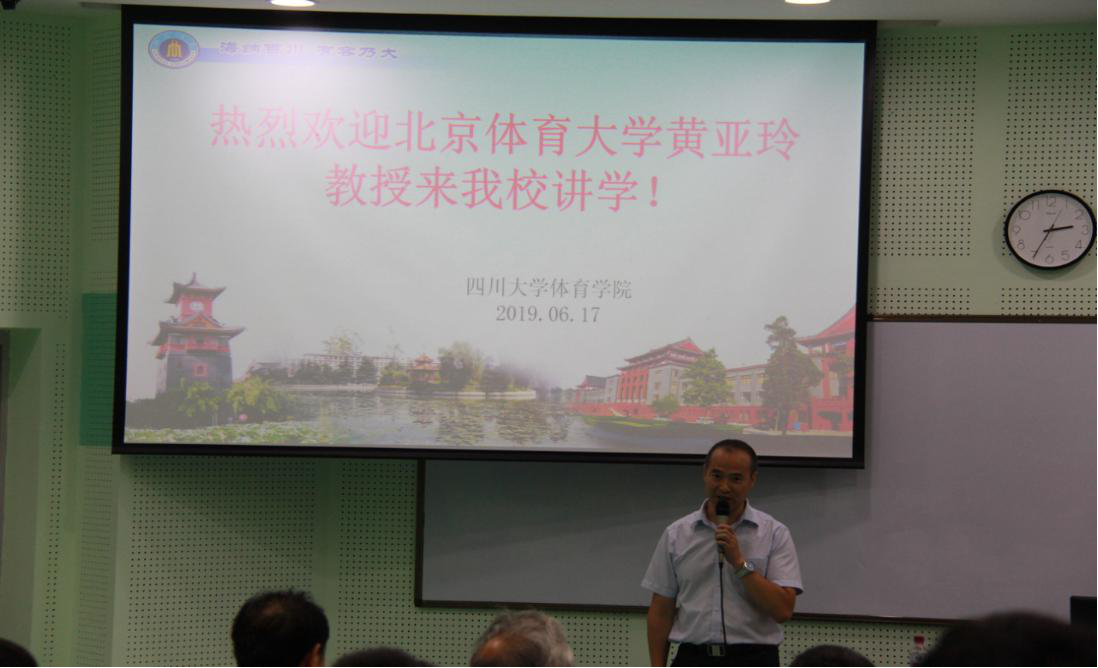 2019年6月17日14:30,北京体育科学学会体育社会科学分会常委兼秘书长,北京体育大学博士生导师,黄亚玲教授应邀在永利集团3044am研究生院1-102做题为“体育社会组织发展与建设”的讲座。本次讲座由体育学院院长向勇教授主持。我院副院长邱硕立副教授、体科所副所长李姗姗副教授、原永利集团3044am体育学院副院长宫川副教授、原永利集团3044am体育学院工会主席赵强教授、2018级辅导员韩淞老师,体育学院全体研究生以及广大校友参加本次讲座。