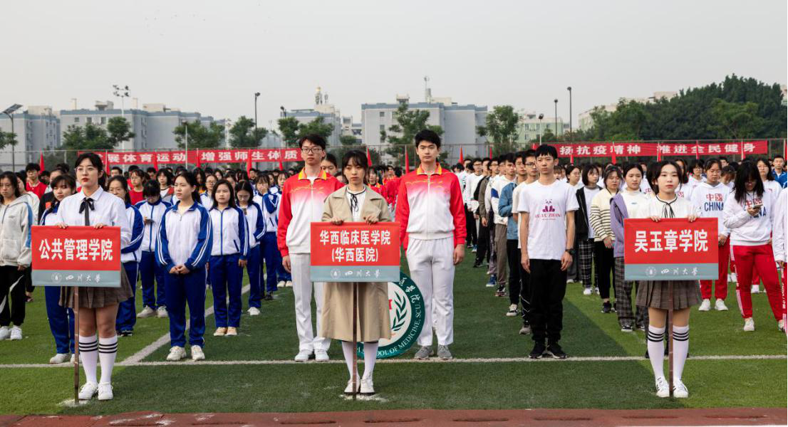 本届运动会主会场举行了简短的开幕式,校党委书记王建国,校长李言荣,副校长侯太平、梁斌、李蓉军、张林、褚良银,及学校各单位负责人,学生代表和运动员参加开幕式。开幕式由侯太平主持。开幕式上,首先,国旗班护卫着国旗庄严入场。在隆重的升旗仪式中,全场肃立、面向国旗,注视着五星红旗冉冉升起、飘扬在运动场的上空。分管体育工作的梁斌副校长致开幕词。他首先代表学校向本届运动会开幕表示祝贺。他指出,川大始终坚持育人至上,人格与体魄并重的理念,把体育精神融入人才培养全过程,不断推进体育教育改革,广泛开展群众性体育运动,致力于全面提升师生身心健康水平。一年一度的田径运动会不仅是对学校体育工作成果的一次重要检阅,更是对广大师生精神风貌的一次集中展示。希望每位参赛运动员弘扬更高、更快、更强的奥林匹克精神,顽强拼搏,公平竞争,赛出风格,赛出水平,赛出友谊。希望全体裁判员和工作人员公正裁决、真诚服务,营造公平公正的环境氛围。最后,他预祝本次运动会取得圆满成功。随后,来自口腔医学院的运动员代表庄颜嘉同学和来自体育学院研究生裁判员代表王炫力同学依次宣誓。最后,学校党委书记王建国教授宣布校运会开幕。
