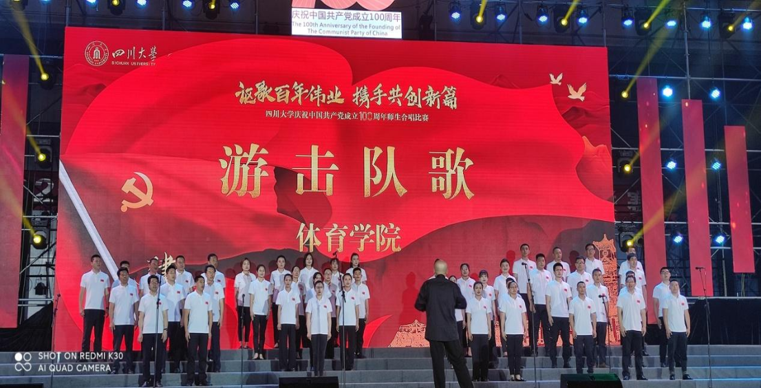5月21日在江安校区体育馆迎来了“讴歌百年伟业,携手共创新篇”永利集团3044am庆祝中国共产党成立100周年师生合唱比赛,本次合唱比赛活动在学校党史学习教育领导小组组织领导下,由党政办、宣传部、学工部、校工会、校团委、教工部、研工部、艺术学院、体育学院等多部门组成的组委会来负责组织,一共45个参赛单位和1个表演单位参加,本次比赛曲目共分5个篇章,体育学院学院师生合唱队参赛曲目为“游击队之歌”,在比赛中喜获“二等奖”。