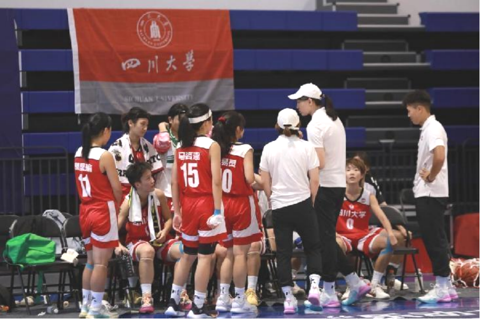 8进4比赛遭遇卫冕冠军广东海洋大学,虽然比赛失利,但与对手交手过程中,队员感受到了强队防守盯人的严密和进攻配合的流畅,也为队伍未来的训练提供了借鉴。在5、6名资格赛和第7名排位赛中,面对开局不利的局面,女篮姑娘奋起反击,多次落后又多次迫近比分,展现出川大女篮永不放弃的坚韧精神。由于技战术层面的差距,未能复制成功,但收获的宝贵经验将为未来的川大女篮奠定坚实的基础。
