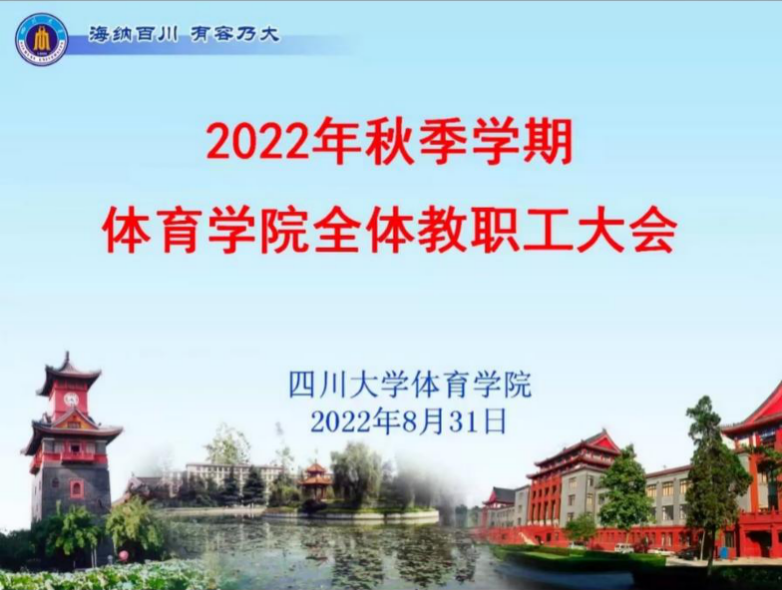 8月31日上午9点半,体育学院2022年秋季学期全体教职工大会在望江校区东区游泳池会议室线上、线下同步举行,学院全体教职工均参与了此次会议。会议由向勇院长主持,学院主要领导依次发表讲话。