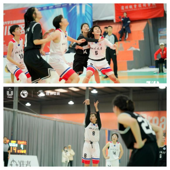 次日,川大女篮分别对战成都工业大学女篮与绵阳城市学院女篮。高强度的比赛并未影响队员们必胜的决心。经过激烈角逐,川大女篮最终取得了最后的胜利,并以小组第一的成绩挺近半决赛,为后续的比赛奠定了基础。
