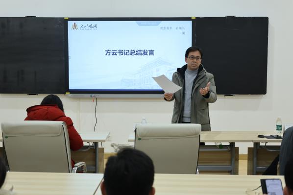 党总支书记方云对本次“大川观澜”青年教师工作坊活动进行了总结讲话,他充分肯定了此次活动筹备到位,各位老师准备充分,讲解深刻,建议直接。并提出了推动教师成长与学院发展的五个关键要素:师德、减负、分类、激励和保障。