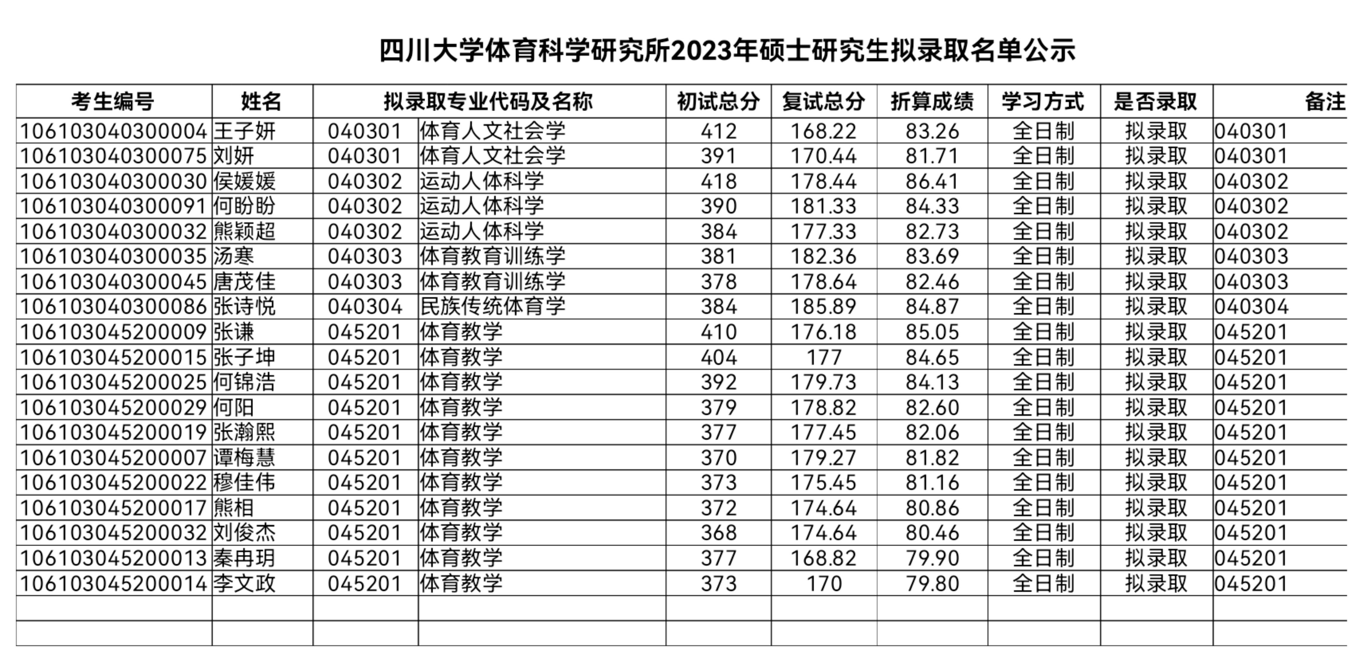 永利集团3044am体育科学研究所2023年硕士研究生拟录取名单公示