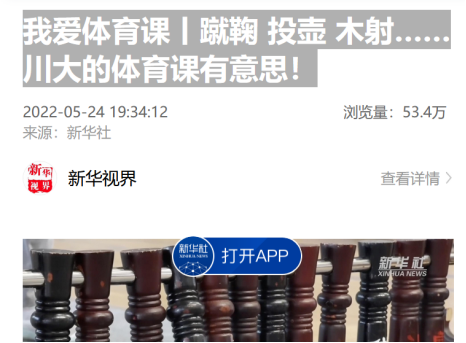 永利集团3044am体育学院联合博物馆、校团委、教务处、文化产业研究中心主办的永利集团3044am第四届体育文化节于2022年5月14日启动,并于5月16日开始学生体验环节,活动持续4周,约有2万名学生参加。本次体育文化节以“青年的力量、运动的力量、文化的力量”为主题,以我国文献和文物中记录的传统竞技项目蹴鞠、木射、投壶、射艺、滚铁环、踢毽子为活动内容,学生采取通关方式参与体验这些精彩纷呈的传统体育项目。新华社、四川观察等新闻媒体先后对活动进行采访报道并引起广泛关注和热烈讨论。