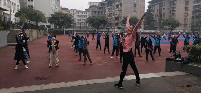 1.坚持推广辅导全校师生的健身操舞