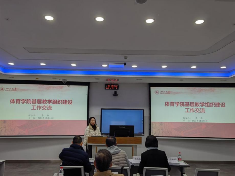12月15日,我院教学科科长李伟、运动训练系副主任孙景权代表体育学院基层教学组织参加了由教务处组织的基层教学组织建设交流会。会上,李伟科长从顶层设计、队伍建设、基层教研活动开展和特色亮点等几个方面介绍了我院基层教学组织相关情况,并学习了海外教育学院、高分子学院、机械工程学院等十余个学院在基层教学组织建设的优秀经验。