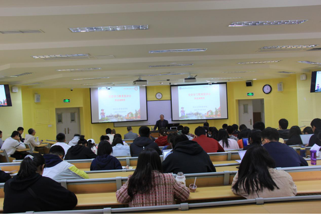 4月14日下午,学校宣讲团成员陈廷湘教授在望江研究生院104会议室作了题为“辉煌的历史与辉煌的未来一一谈谈中国共产党百年发展史的基本规律与总体趋向”的党史教育宣讲报告。体育学院党总支书记夏泽友、院长向勇、正处组织员荣文学、党员干部及师生代表100余人参加了报告会。