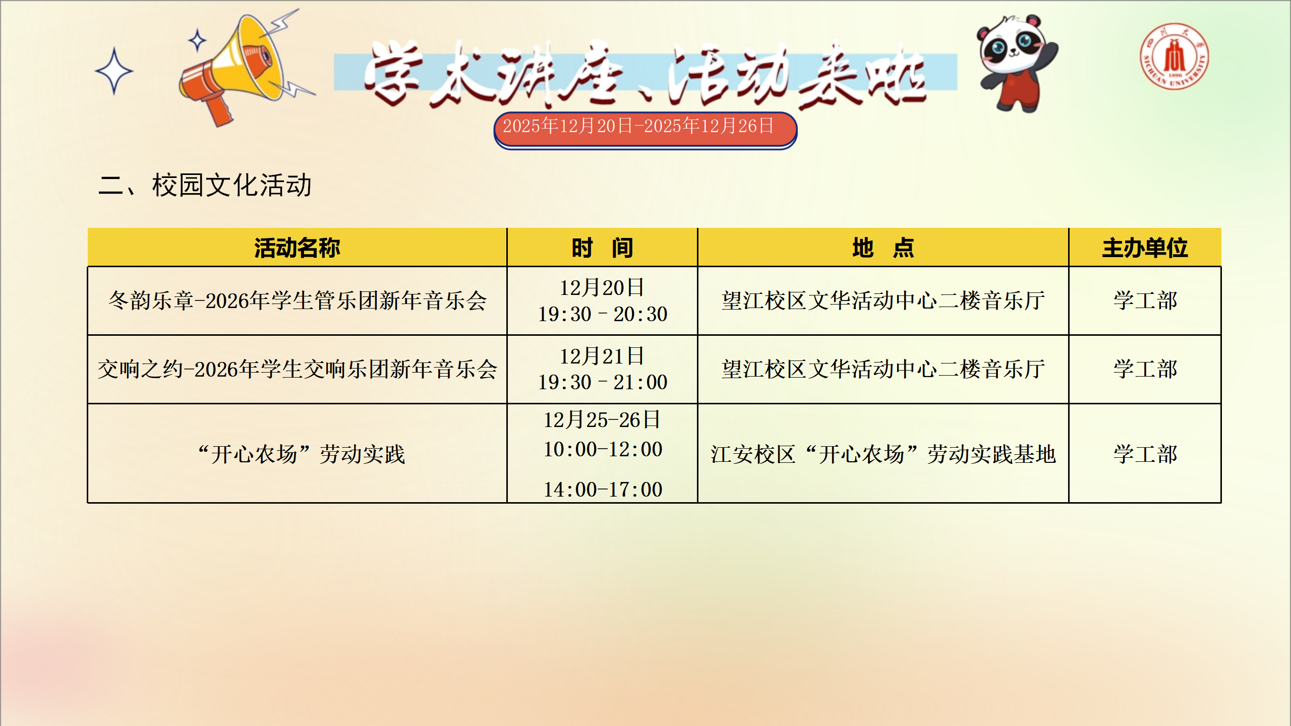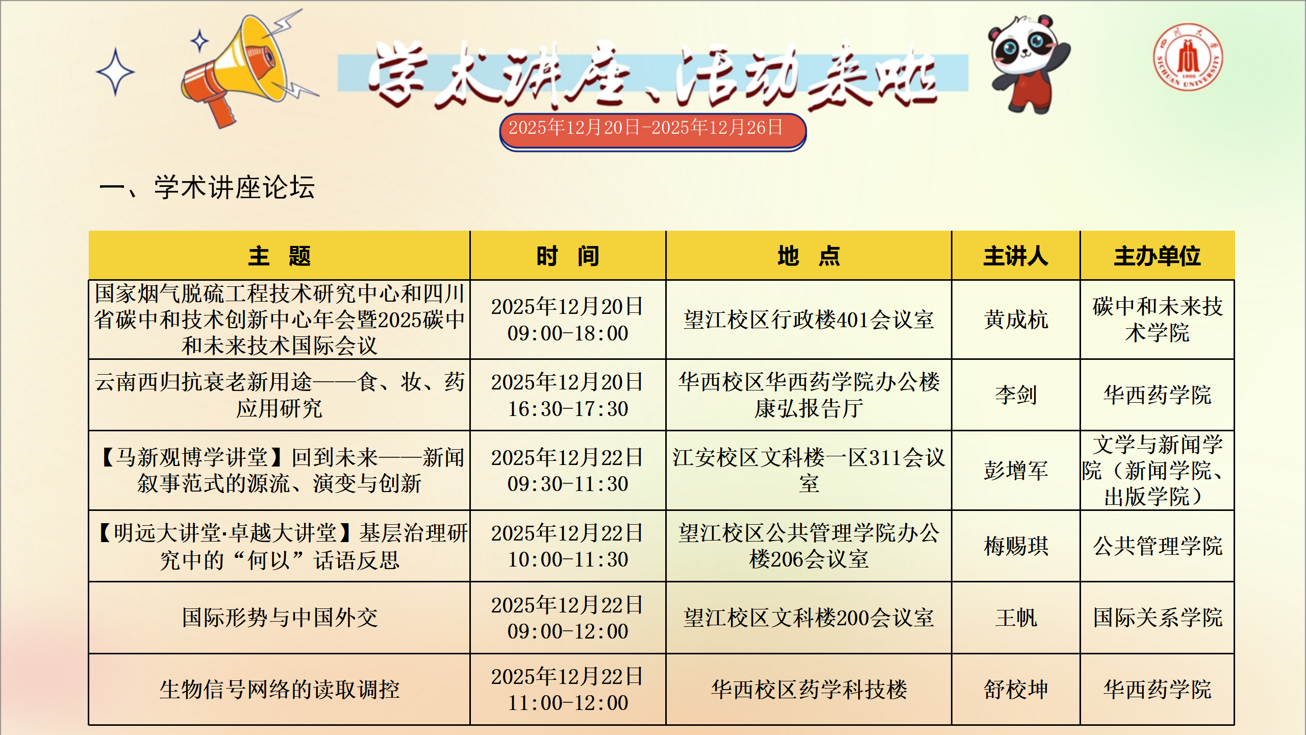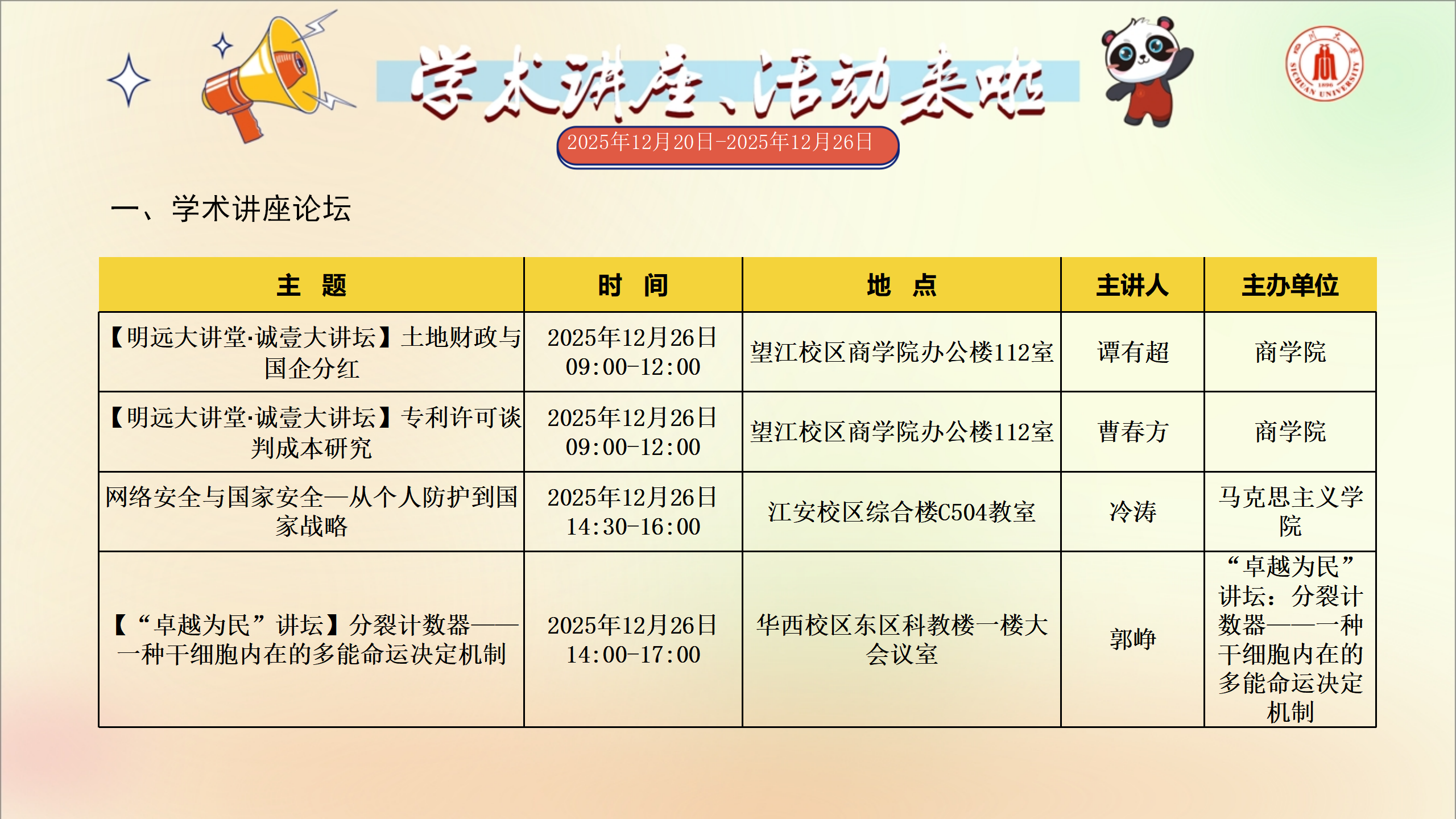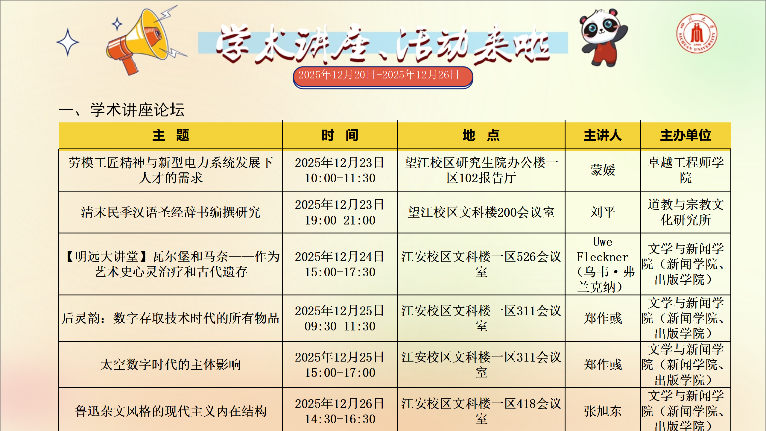 学术讲座及校园活动文化预告(12月20日-12月26日)