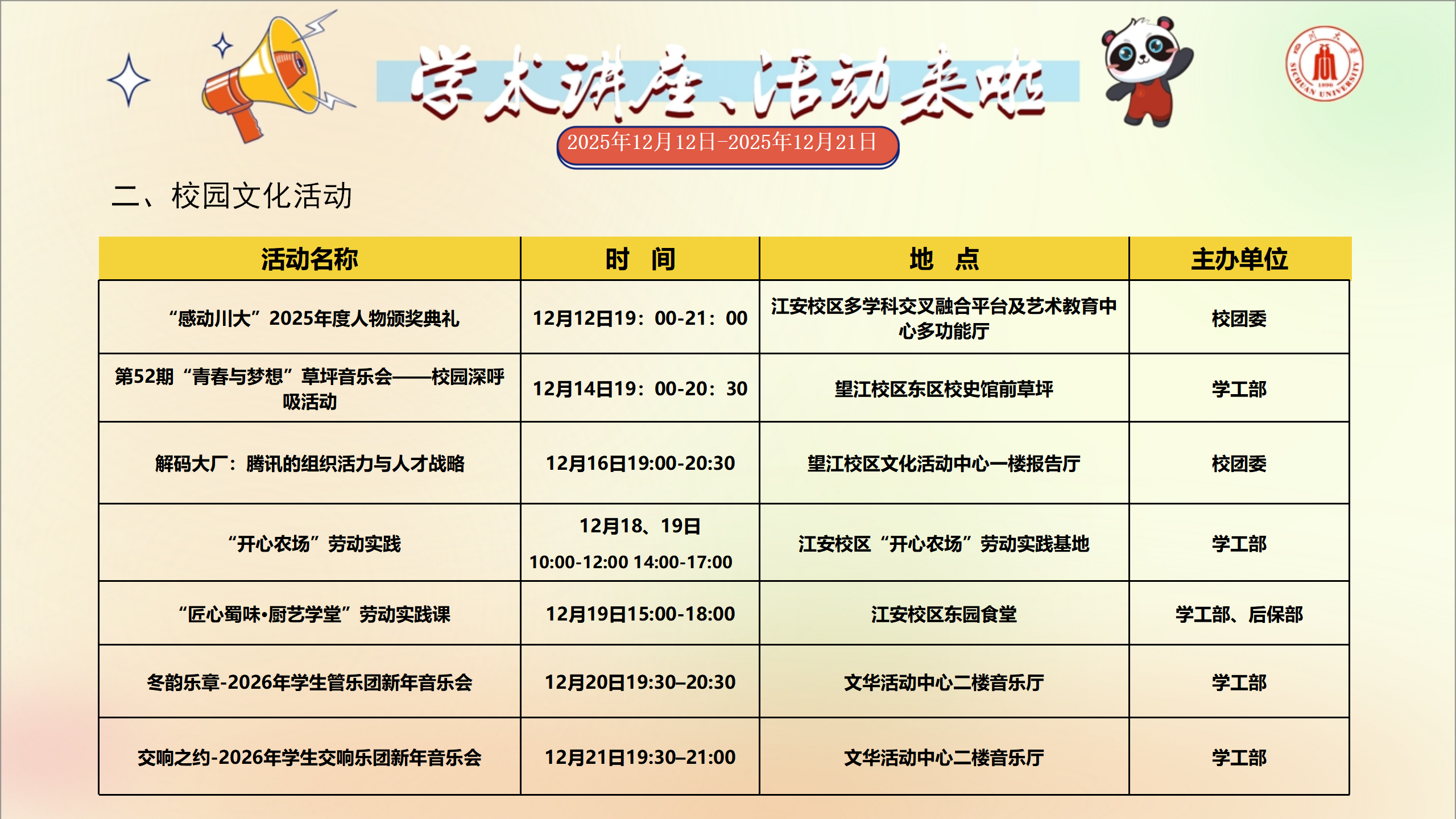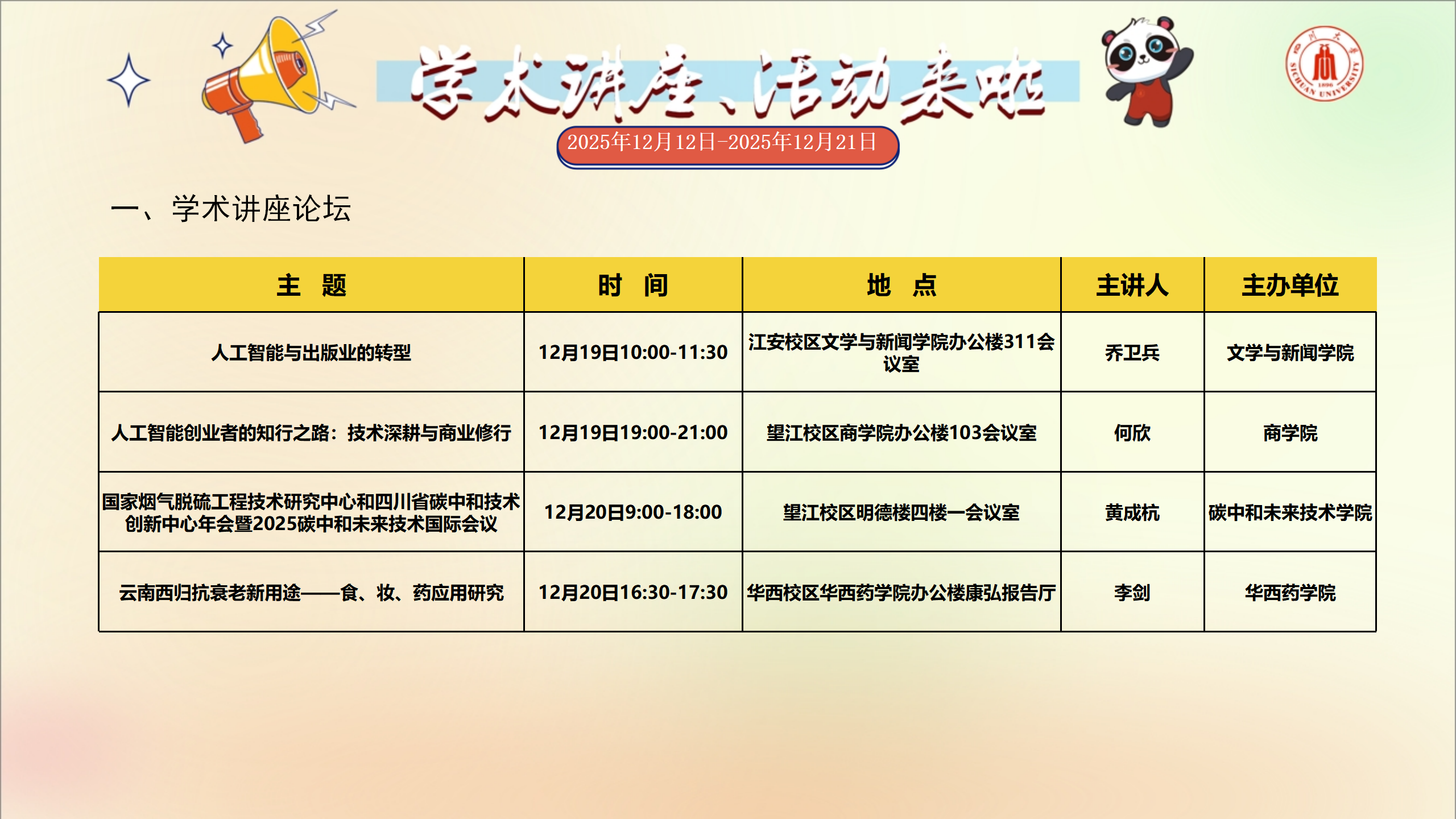 学术讲座及校园活动文化预告(12月20日-12月26日)