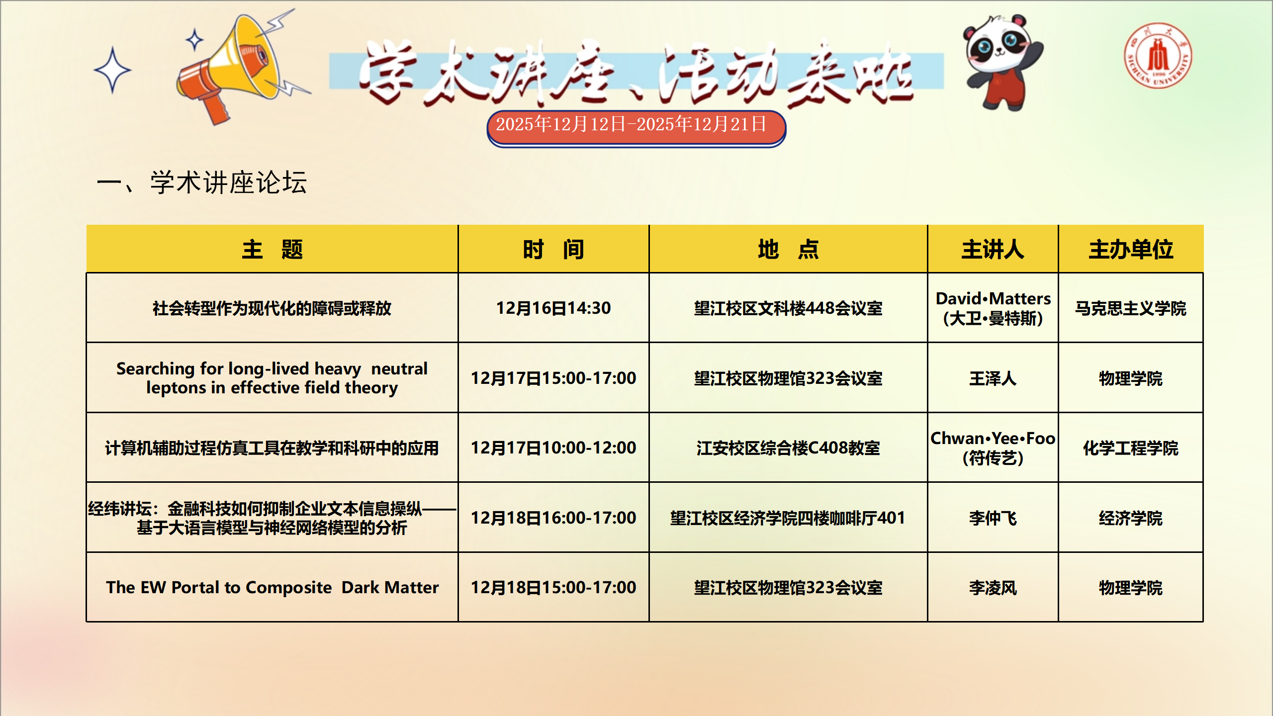 学术讲座及校园活动文化预告(12月12日-12月21日)