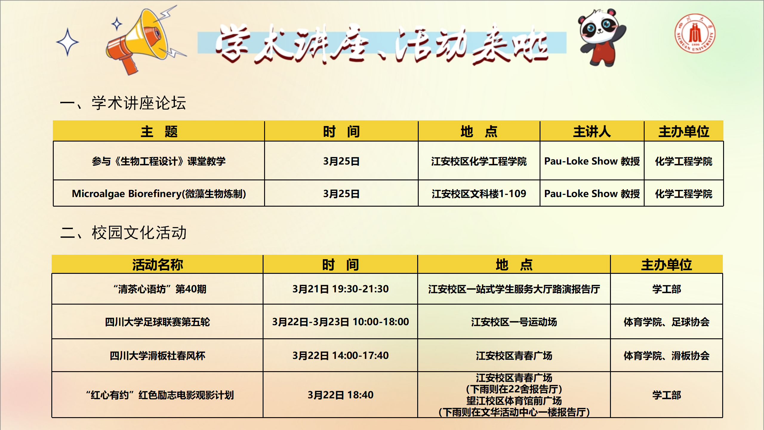 学术讲座及校园活动文化预告(3月17日-3月23日)