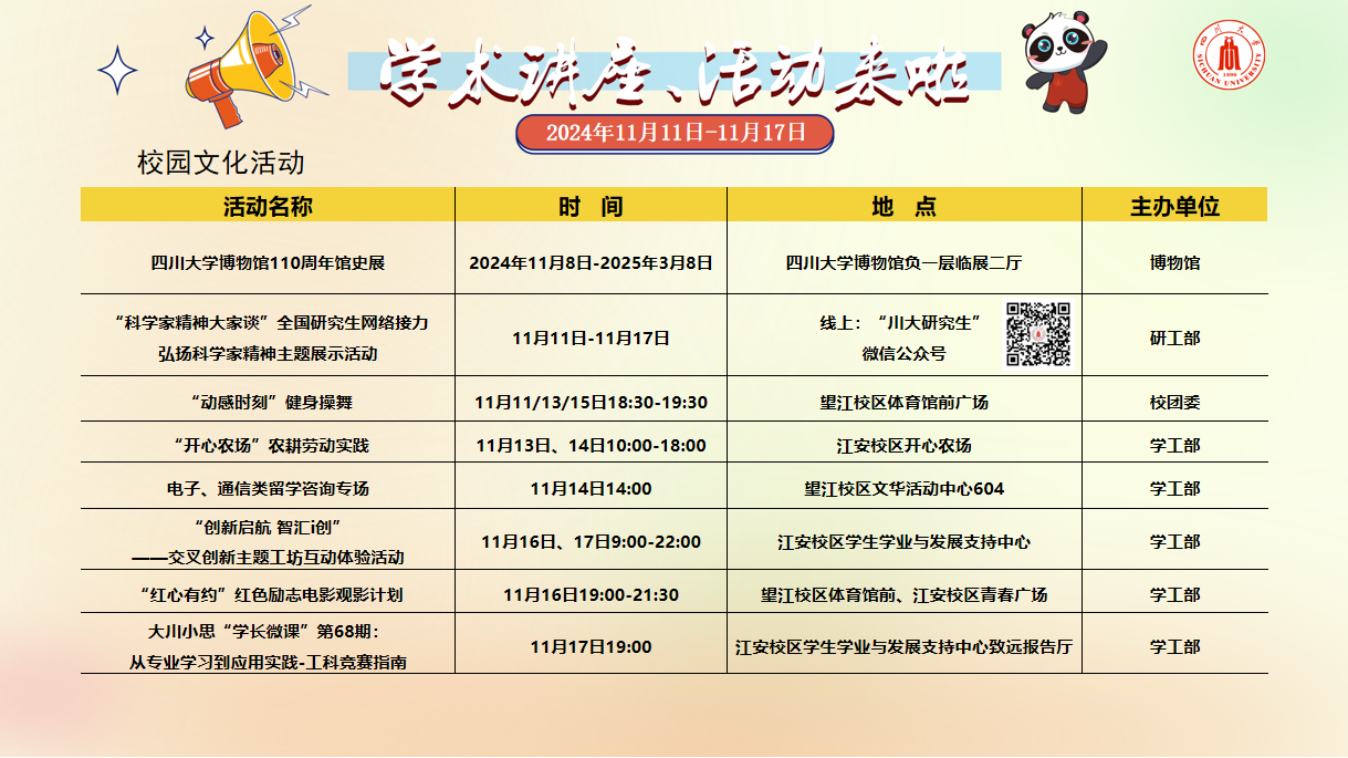 学术讲座及校园文化活动预告(11月4-11月10)