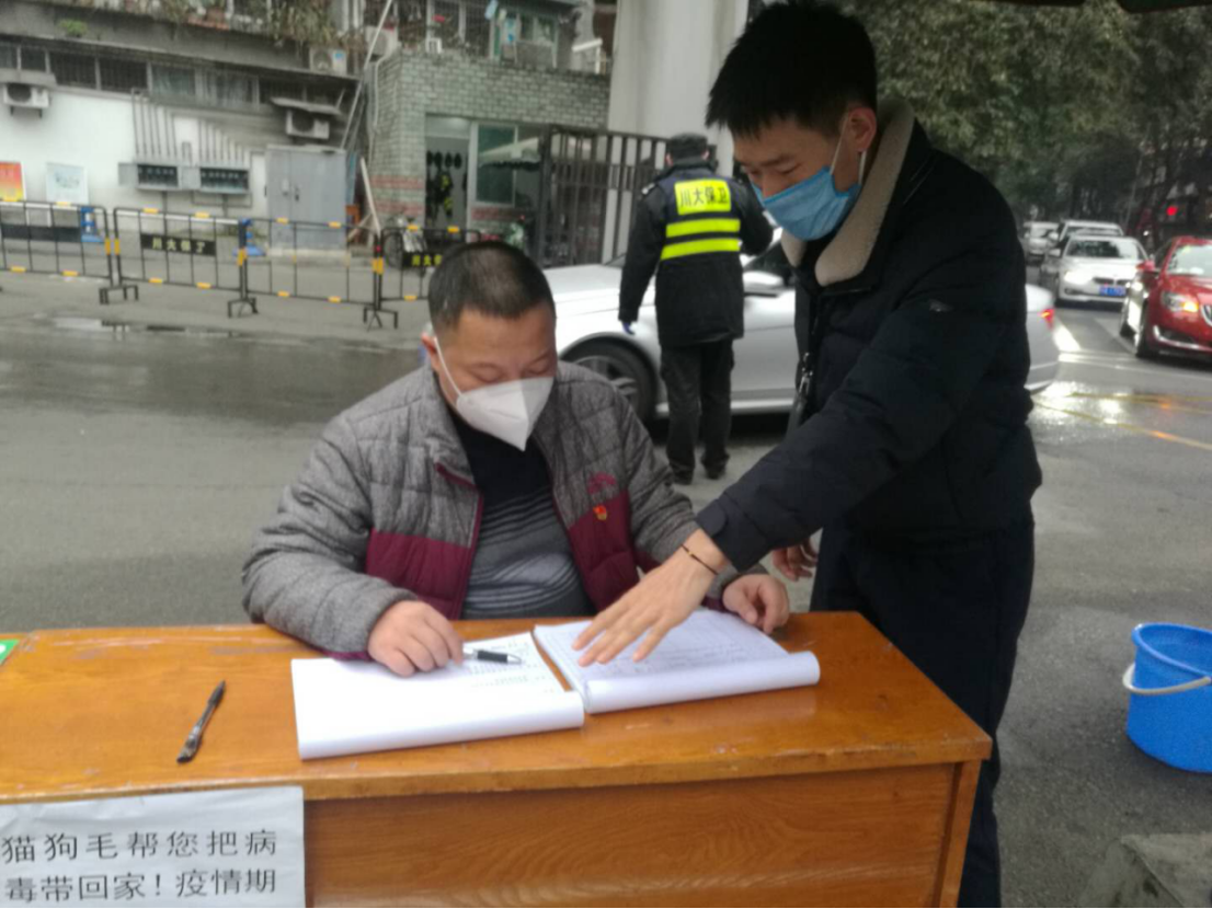 冬春交替,春寒料峭,再加上二月的成都阴霾湿冷,给疫情防控带来困难。体育学院陶海波、许春虎、汪文波、王强等党员同志响应号召积极参与校区值守志愿服务。他们克服困难、排除天气干扰,冒着寒风坚守在望江校区南大门防控一线,协助学校保卫处对进校人员进行全面排查并登记信息,并及时劝返校外人员,为将疫情防控在校园外,守护学校师生健康做出了自己的贡献。